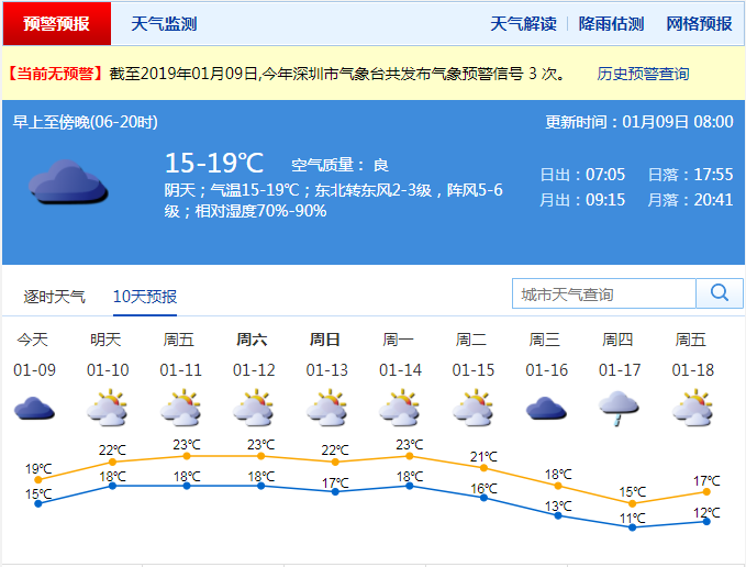 深圳新聞網(wǎng)2019年1月9日訊(記者 陳婕)先帶來兩個好消息,首先是本周末陰沉天氣好轉,有明顯陽光,適宜出行游玩浪起來!第二個好消息就是春節(jié)期間(2月4日-2月10日),無強冷空氣影響深圳市。假期前期溫暖舒適,后期弱冷空氣影響,氣溫略降,最低氣溫12-13℃。目前大片云層覆蓋了我國華南地區(qū),深圳市天氣陰沉,缺少陽光,明后天還是持續(xù)陰天,有分散小雨,衣服曬不干。