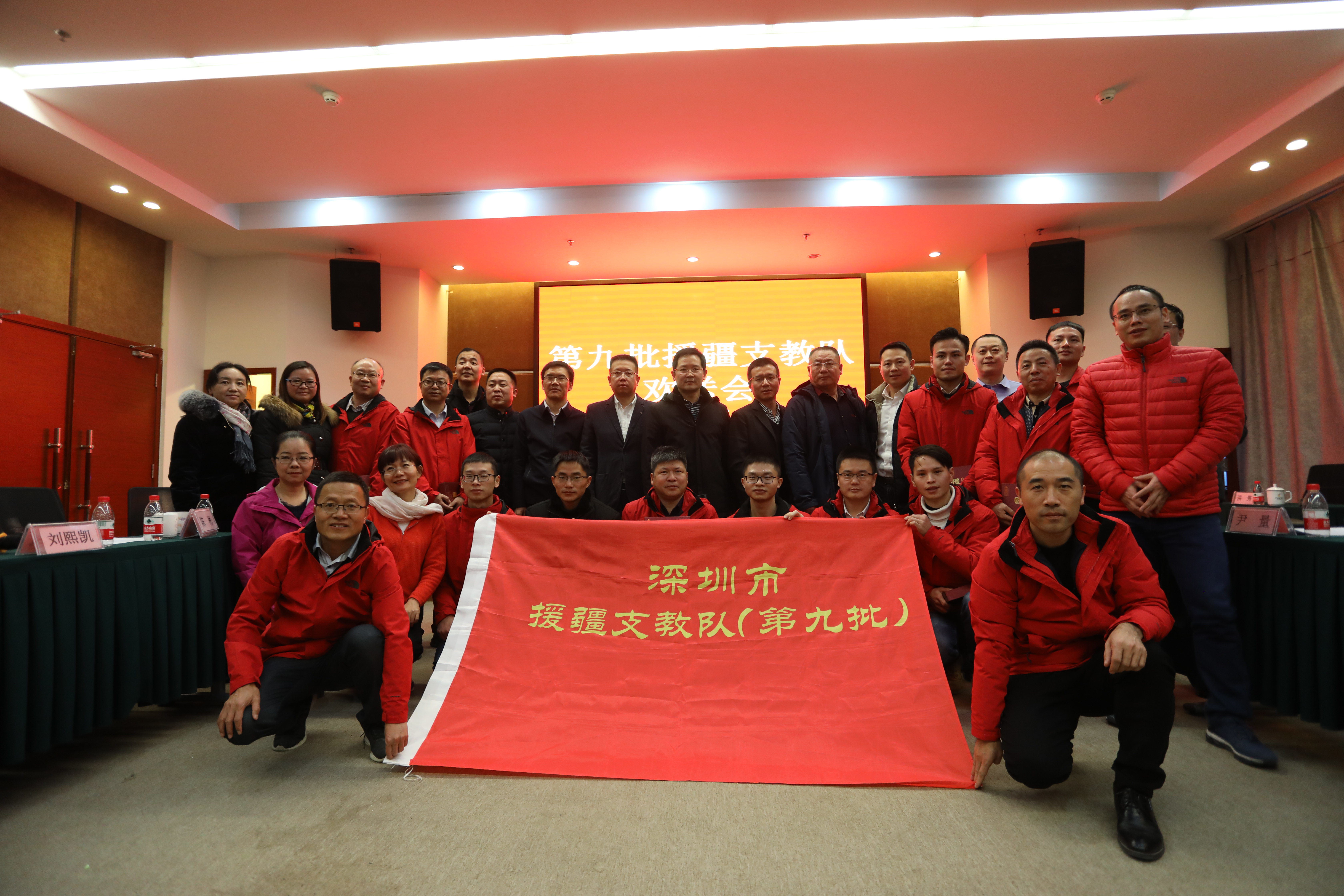 深圳新聞網2019年1月9日訊 1月8日下午,深圳市第九批援疆教師歡送會在深圳援疆前方指揮部會議室舉行。會上,14名來自深圳中小學的支教教師和3名大學支教教師回顧了一年半來的工作經歷及援疆感受,喀什地委組織部、深圳援疆前方指揮部、受援地教育局及相關學校領導和教師代表充分肯定和稱贊了支教隊的工作成績,并送上了溫暖的離別寄語和祝福。