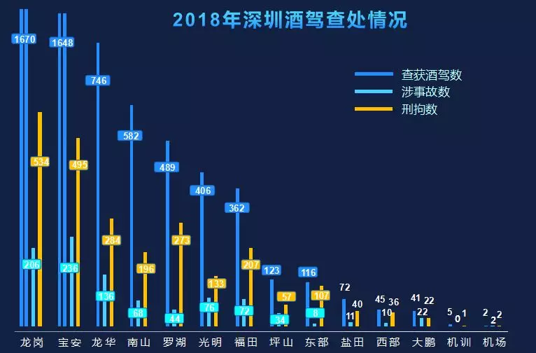 2018年深圳交警共受理危險駕駛案6687宗,立案6307宗6313人,處置醉酒駕駛6313人,全部采取了刑事強(qiáng)制措施。涉及酒駕事故925宗,占總數(shù)的14.65%。此外,2018年辦理阻礙執(zhí)法案85宗89人,行政拘留74人,教育警告15人;辦理妨害公務(wù)案7宗,刑事拘留7人。