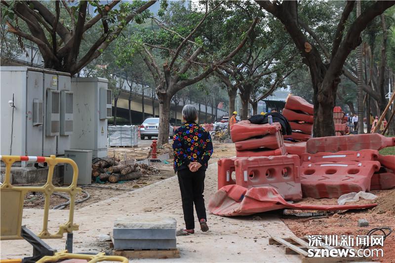 福田僑香路是人大代表?xiàng)钋谡{(diào)研的第二個(gè)點(diǎn),從現(xiàn)場可以看到,目前僑香路人行道正在進(jìn)行施工,不少大型機(jī)械正在作業(yè),發(fā)出陣陣轟鳴聲,來往行人只能繞道。