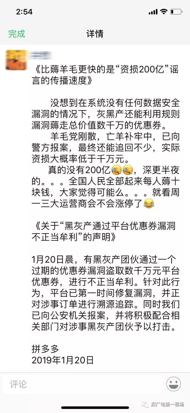 針對此行為,平臺已第一時間修復(fù)漏洞,并正對涉事訂單進(jìn)行溯源追蹤。同時拼多多已向公安機(jī)關(guān)報(bào)案,并將積極配合相關(guān)部門對涉事黑灰產(chǎn)團(tuán)伙予以打擊。