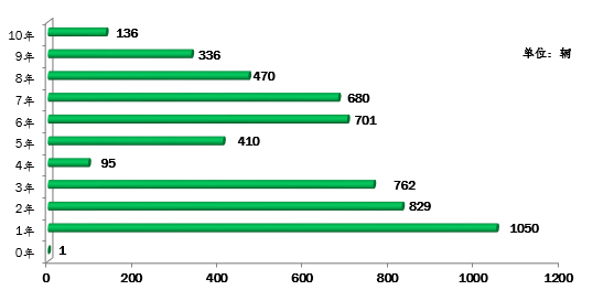 ▲行業(yè)教練車(chē)車(chē)齡統(tǒng)計(jì)圖(注:根據(jù)《機(jī)動(dòng)車(chē)強(qiáng)制報(bào)廢標(biāo)準(zhǔn)規(guī)定》第五條規(guī)定:小型教練載客汽車(chē)使用10年)