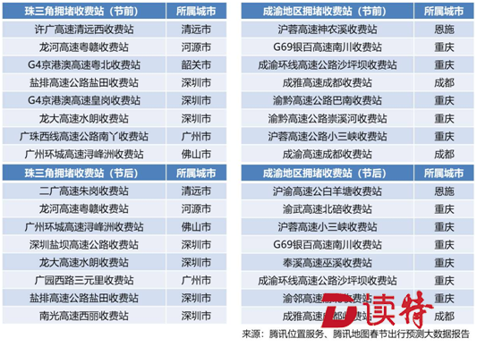 在珠三角地區(qū),擁堵收費(fèi)站全部位于廣東省內(nèi),集中分布在廣州、深圳等中心城市周邊,及通往湖南、江西的省界區(qū)域,擁堵時(shí)間與長(zhǎng)三角相同。長(zhǎng)深高速東江大橋至泰美服務(wù)區(qū)、莞佛高速坦尾立交至虎門(mén)大橋,預(yù)計(jì)將成為節(jié)前、節(jié)后最擁堵的高速路段。