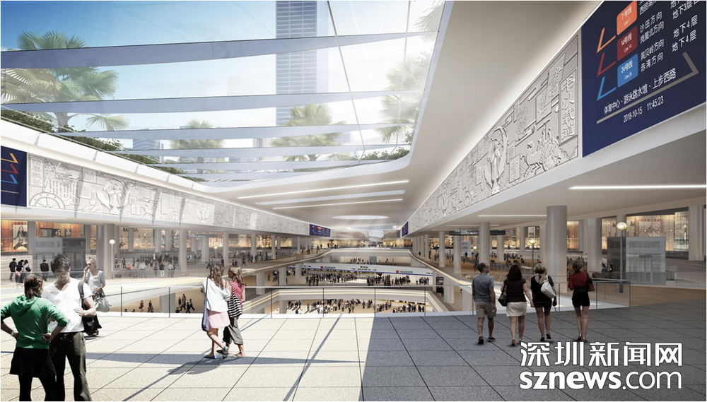 在此過程中,項(xiàng)目結(jié)合城市更新,以軌道交通為核心,通過5個(gè)軸帶有效連接體育中心、市二醫(yī)院、華富村、華強(qiáng)北商業(yè)街、筆架山公園、中心公園等多個(gè)城市區(qū)域,形成集多種功能為一體的綜合型城市地下空間新典范。