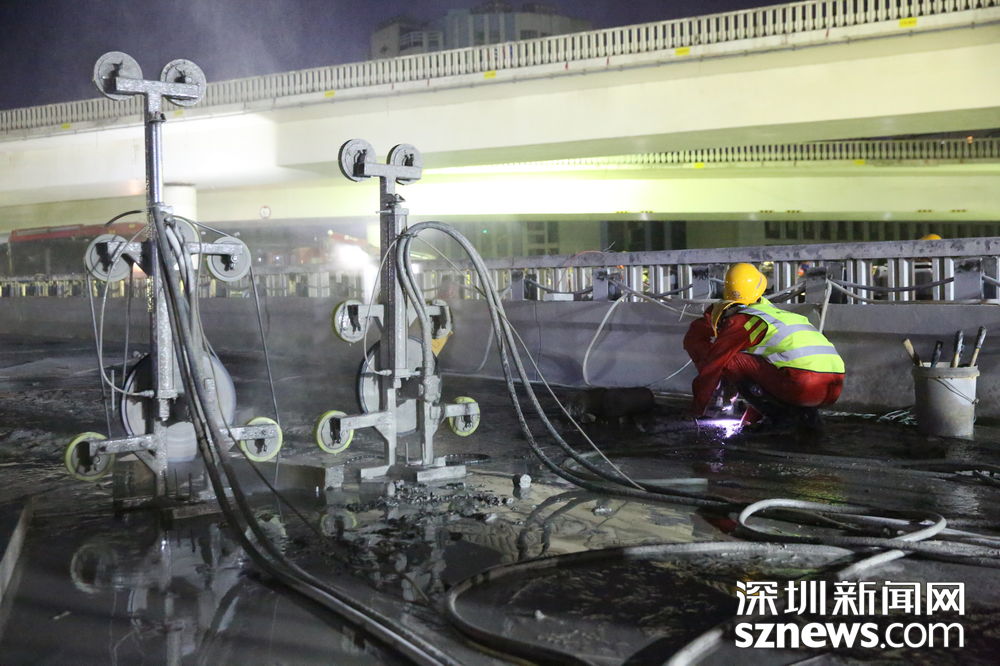 深圳新聞網(wǎng)2019年2月3日訊(記者 黃賢娟 趙穎致 黃婉婷 胡志方 林婉婷)與日漸冷清下來的街道商鋪不同,春節(jié)前夕的黃木崗立交仍是一片繁忙景象。這是2月2日傍晚,數(shù)百名身穿橙黃馬甲的工人正在忙著將立交橋切割分離。平板車、模塊車往來穿梭,將一塊塊拆卸下來的橋體陸續(xù)運(yùn)走。夕陽(yáng)西下,橙黃色工服反射出點(diǎn)點(diǎn)熒光,成為安靜的城市中獨(dú)特的點(diǎn)綴。