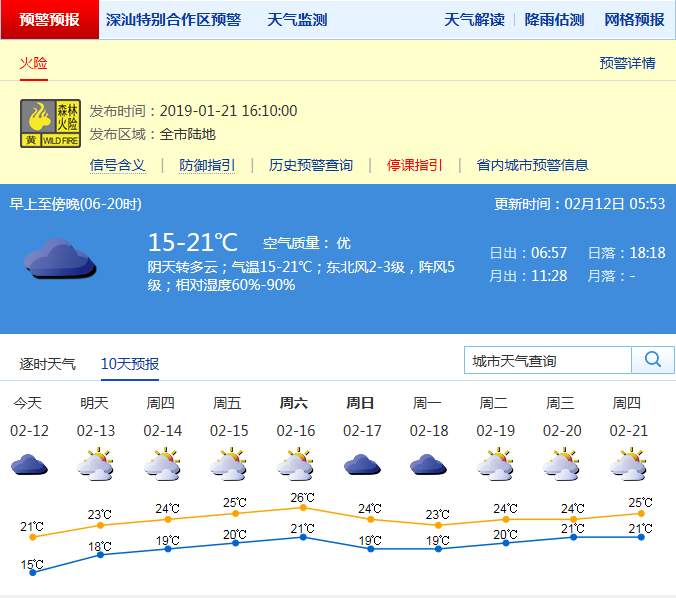 記者從深圳市氣象局了解到,昨日受冷空氣影響,早晨最低氣溫在14-16℃,較春節(jié)假期明顯變涼,因?yàn)樵屏枯^多,白天氣溫在17℃左右徘徊;預(yù)計(jì)12日起冷空氣逐漸減弱,氣溫逐日上升,早晚能見度逐漸轉(zhuǎn)差,氣溫在15-21℃;15-16日多云間晴天,早晚有輕霧或霧,中午前后較熱;17-18日弱冷空氣影響,有分散小雨,氣溫下降,沿海和高地陣風(fēng)7-8級(jí)。