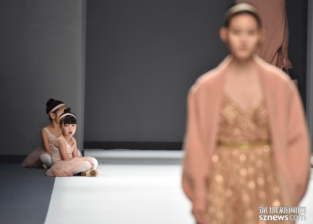 品牌OBBLIGATO展示環(huán)節(jié),參展的一位小孩子望向正在走臺的模特