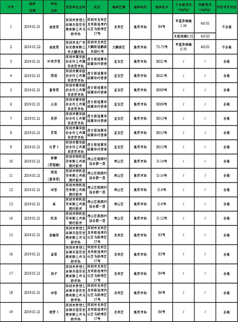 蔬菜有2份抽樣樣品不合格