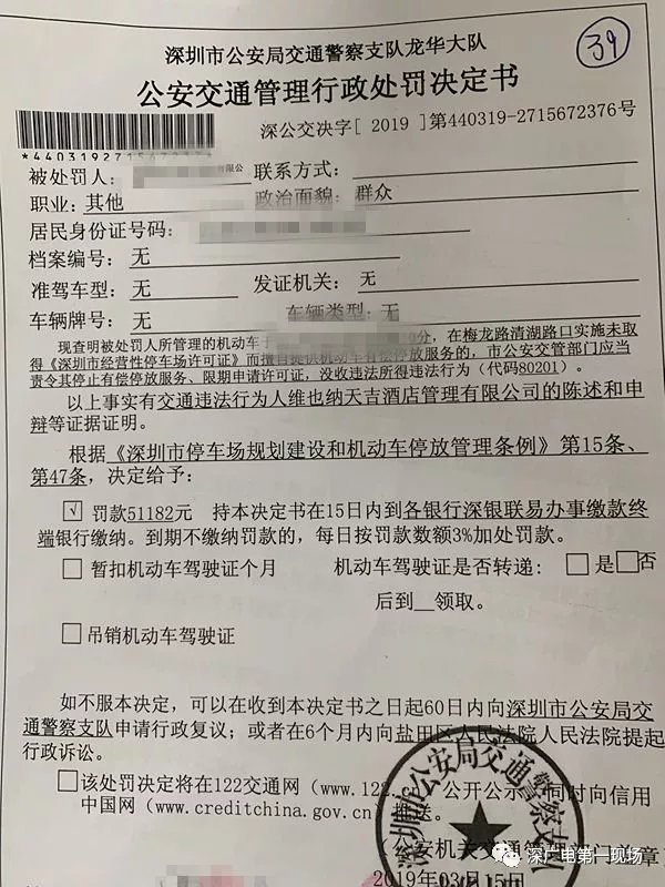 根據(jù)《深圳市停車場(chǎng)規(guī)劃建設(shè)和機(jī)動(dòng)車停放管理?xiàng)l例》和《深圳市經(jīng)營性停車場(chǎng)設(shè)施管理暫行辦法》的規(guī)定龍華交警依法沒收該停車場(chǎng)非法所得51182元,處罰款5000元,并開具整改通知書,要求該酒店限期內(nèi)進(jìn)行整改。