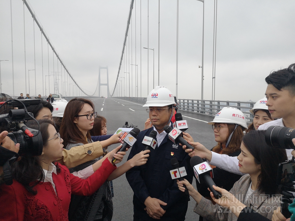 虎門二橋項(xiàng)目營運(yùn)負(fù)責(zé)人高嚴(yán)廣(中)介紹虎門營運(yùn)情況
