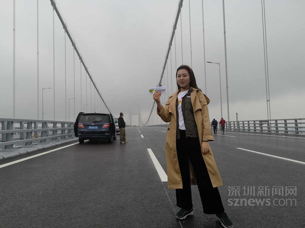 深圳新聞網(wǎng)記者劉彥蘭在虎門二橋的直播工作照