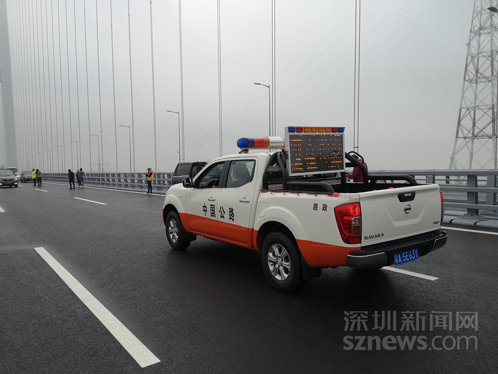 大橋工作人員在橋面巡查