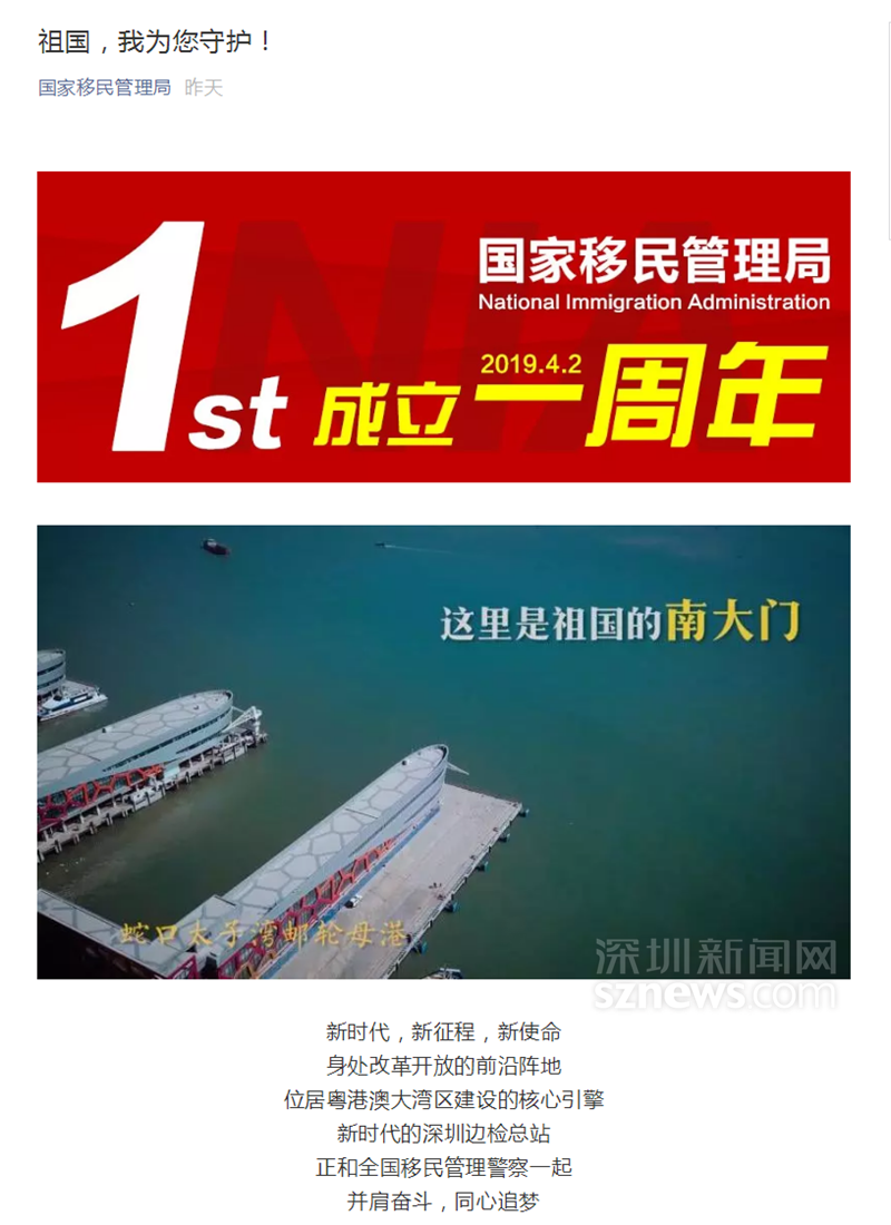深圳邊檢總站做的這條視頻上了國(guó)家移民管理局的微信公眾號(hào)