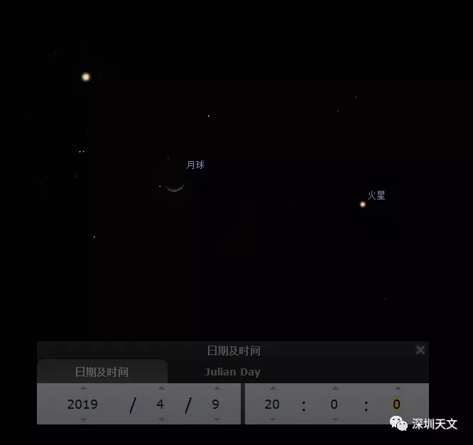 昨晚(4月9日),農(nóng)歷初五,機(jī)緣巧合,彎彎的月亮將從亮恒星畢宿五和大行星火星的中間路過。三者相聚在一起,形成“雙星伴月”的有趣天象。更有趣的是,三者擺成了一張笑臉的模樣:左上方的畢宿五為左眼睛,右方的火星為右眼睛,中間的月亮為嘴巴。