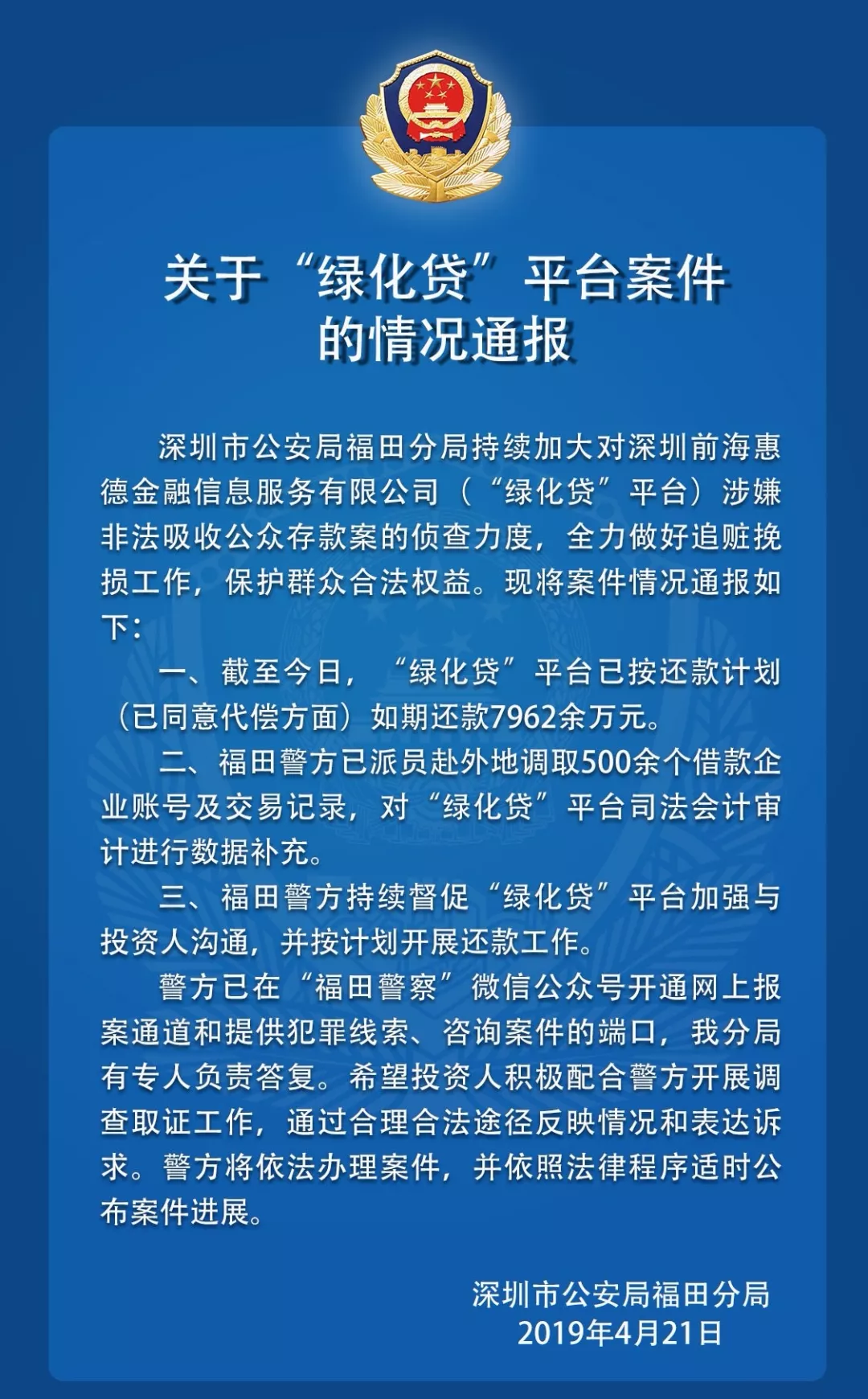 關于“綠化貸”平臺的案件情況通報