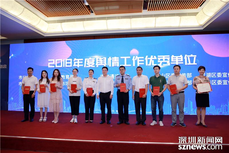 “2018年度深圳市輿情工作優(yōu)秀單位”獲獎代表領獎合影