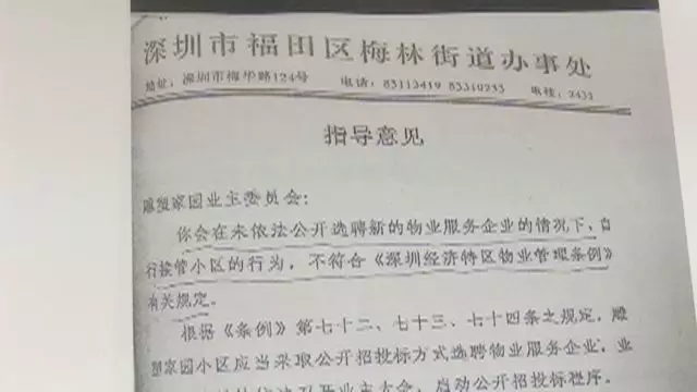 朱先生說(shuō),那名業(yè)主在發(fā)出他的舉報(bào)信的同時(shí),還發(fā)了一張梅林街道辦的指導(dǎo)意見(jiàn):