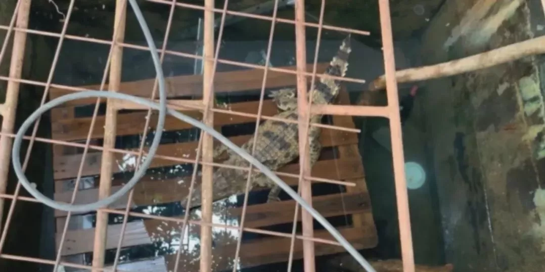 記者來到這個叫做的虎背山的出入口,農(nóng)家樂便映入眼簾。剛走進去,店員立馬迎了上來,招呼記者落座點菜。除了雞、鴨、魚等供客人挑選外,還有一條鱷魚養(yǎng)在池子中。