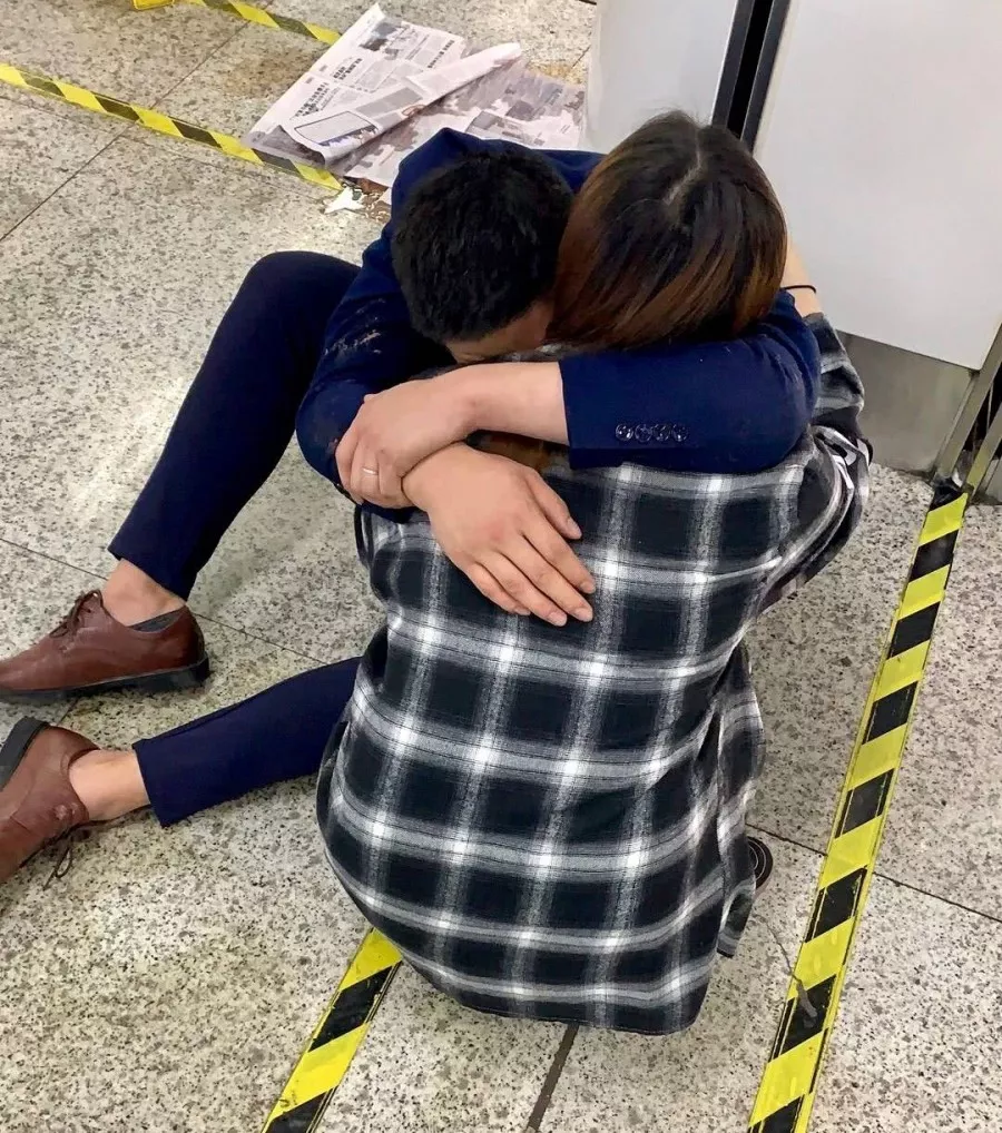 幾分鐘后,男子的妻子趕來,