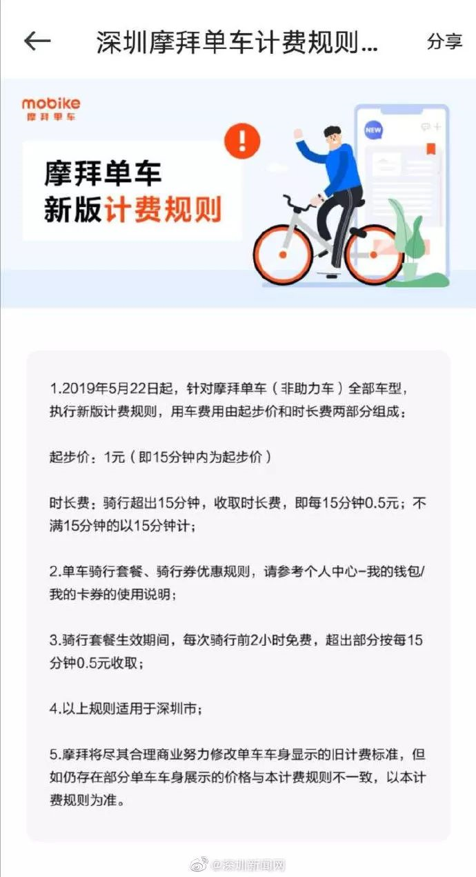 ①摩拜宣布從昨日起在深圳實(shí)行新的收費(fèi)標(biāo)準(zhǔn)。按照新的收費(fèi)標(biāo)準(zhǔn),15分鐘以內(nèi)短時(shí)騎行用戶基本不受影響,而騎行1小時(shí)的費(fèi)用為2.5元,較目前增加0.5元。