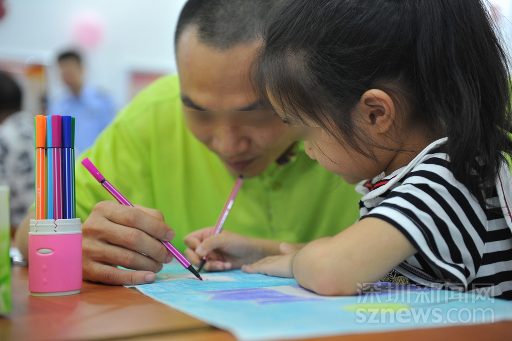 三歲半的圓圓自出生以來從未見過爸爸張某,這次在獄內(nèi)相見,一開始對(duì)身邊爸爸滿是錯(cuò)愕,完全把他當(dāng)成了陌生人,在媽媽的鼓勵(lì)下,才慢慢有了親情上的觸碰。張某把圓圓摟在懷里,眼睛從未離開過女兒,一會(huì)摸摸女兒的胳膊,一會(huì)給女兒拆零食,也陪著她做做涂鴉。可除了這些,他暫時(shí)卻找不到和女兒交流更好的辦法。