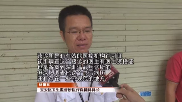 隨后,寶安區(qū)衛(wèi)生監(jiān)督所工作人員也趕到現(xiàn)場,醫(yī)療保健科科長林健東表示,當(dāng)時死者注射的是,生理鹽水、克林霉素以及地塞米松,事發(fā)之后,他們已經(jīng)立即派出監(jiān)督員來診所調(diào)查。