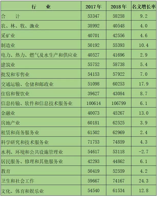 (2018年城鎮(zhèn)私營(yíng)單位分行業(yè)就業(yè)人員年平均工資。單位:元,%)