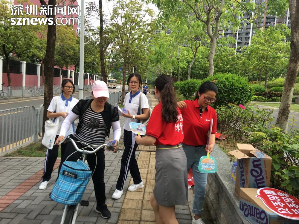 記者在深圳高級中學(集團)北校區(qū)校門口看到,有家長、老師及教育機構自發(fā)組織到考場外,為考生提供送水、接送等服務。據了解,他們是來自龍華區(qū)實驗學校和深圳高級中學(集團北校區(qū))的老師和考生家長。
