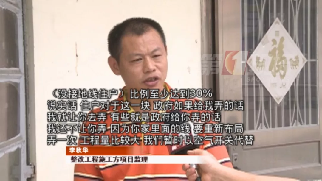施工方表示,政府出資整修的是公共區(qū)域,他們在施工過程中發(fā)現(xiàn)很多房子存在電線老舊、沒有地線等隱患,但是房東不愿意出錢整改,唯有暫時以空氣開關代替漏電開關。