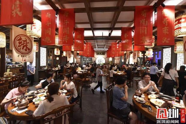 記者在大眾點評上搜索,楊記隆府排在深圳川菜熱門榜的第一名。餐廳處于金光華六樓,搭乘觀光電梯上到六樓,右手邊就可以看到民國風的楊記隆府,進門處有兩位堂倌候著,雙手抱拳來了一句,“客官幾位?”,小婕瞬間被代入江湖中,有人的地方就有江湖,江湖人必吃江湖菜。