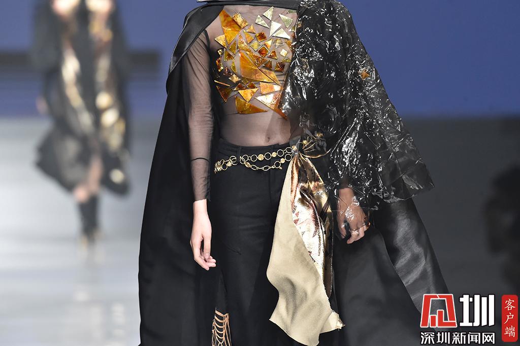 時裝優(yōu)秀學(xué)生組展示環(huán)節(jié),設(shè)計師肖榕作品,其作品以純黑色系為主