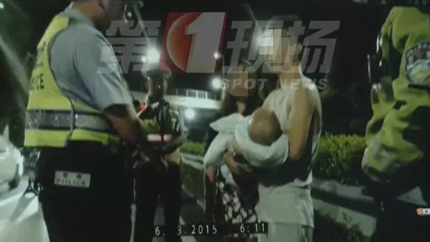 遇到交警檢查突然抱娃抵抗