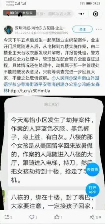 這兩天微博上流傳南山海怡東方小區(qū)發(fā)生了一起“尾隨業(yè)主綁架”案件,該小區(qū)業(yè)主論壇都炸開鍋了,聊天記錄透露的細(xì)節(jié)讓人震驚——“電梯內(nèi)女孩被持刀劫持”、“搶走手機(jī)”、“嫌疑人是電器維修人員”,到底這事是真是假?