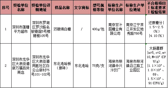 最新一期食品抽檢通報