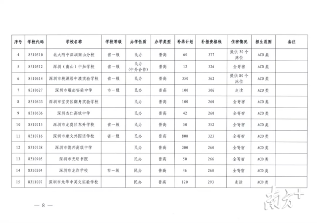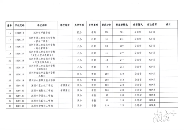 記者梳理發(fā)現(xiàn),目前,深圳市共有16所普高尚有擴招及補錄計劃,補錄人數(shù)2430人,最高補錄分數(shù)線為377分。此外,全市還有4所中職學(xué)校與7所中技學(xué)校進行擴招與補錄,補錄人數(shù)共1367人,最高補錄分數(shù)線為316分。