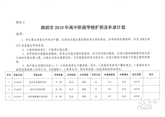 凡參加了深圳市2019年中考,尚未被高中階段學(xué)校錄取,且符合全市統(tǒng)一劃線錄取資格并達到各校補報資格線的考生,可參加補報志愿。補填志愿只能填報未完成招生計劃或有擴招計劃的學(xué)校,具體可查閱“深圳招考網(wǎng)”(zkb.sz.gov.cn)及我辦在有關(guān)媒體上公布的《深圳市2019年高中階段學(xué)校補錄計劃》(以下簡稱《補錄計劃》)。