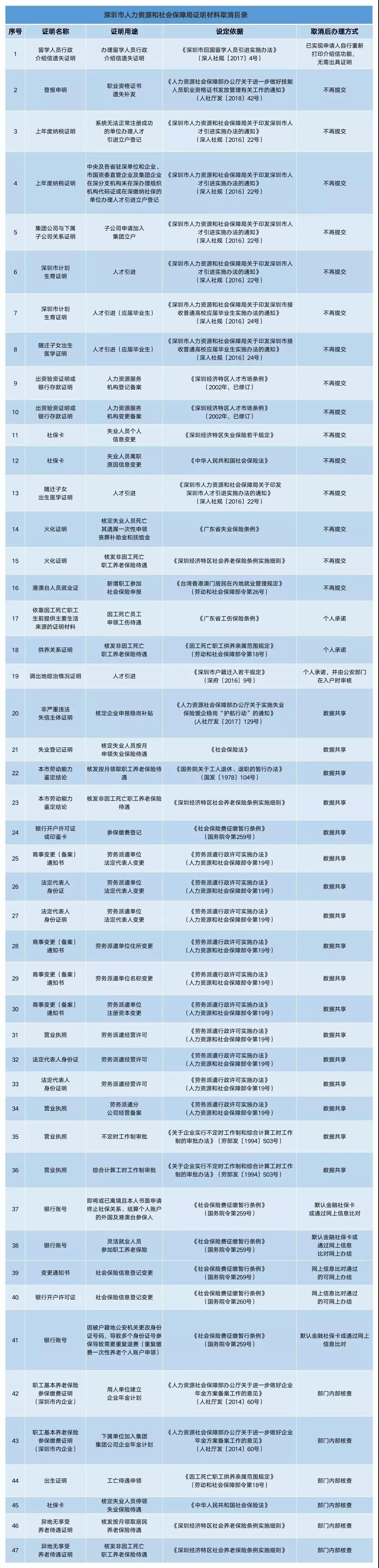 深圳特區(qū)報2019年7月31日訊 好消息,為了減證便民、優(yōu)化服務,深圳市人力資源和社會保障局日前取消了47項證明材料!