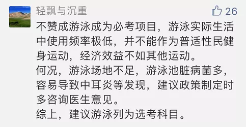 六萬(wàn)多考生當(dāng)中參加游泳考試的竟然不足兩百人。