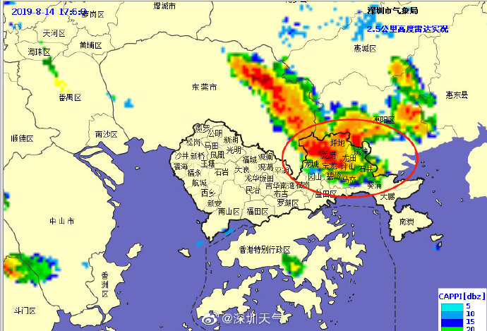 過去1小時,龍崗區(qū)(坪地、寶龍、龍崗街道)和坪山區(qū)(坪山街道)累計雨量已達暴雨,預(yù)計強降雨還將持續(xù)1小時,深圳市氣象臺于2019年08月14日17時50分在龍崗區(qū)(坪地、寶龍、龍崗街道)和坪山區(qū)(坪山街道)發(fā)布暴雨橙色分區(qū)預(yù)警,全市進入暴雨防御狀態(tài),請注意防御。