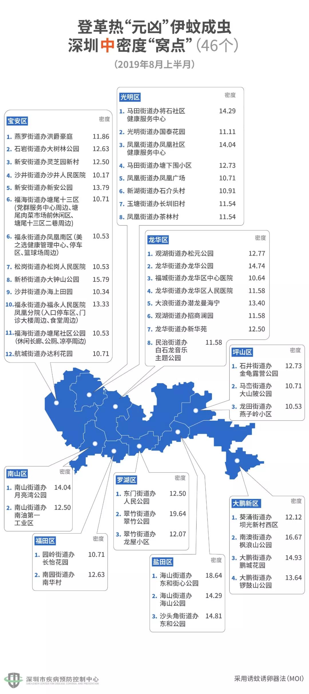 見(jiàn)圳客戶端·深圳新聞網(wǎng)2019年8月21日訊(見(jiàn)圳客戶端·深圳新聞網(wǎng)記者 劉夢(mèng)婷 通訊員 深疾控)深圳市疾控中心最新發(fā)布的登革熱指數(shù)為II級(jí)(2019年8月8日至9月4日),提示本市登革熱感染風(fēng)險(xiǎn)較高。進(jìn)入登革熱流行季節(jié),這時(shí)候我們要做的,就是趕緊看看自己周圍有哪些伊蚊窩藏的“黑點(diǎn)”!8月21日,深圳市疾控中心發(fā)布了一份最新的“蚊子窩”地圖。