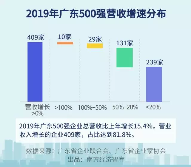 2019年入榜廣東民營100強企業(yè)中前10強的平均營業(yè)收入比上年增長24%。