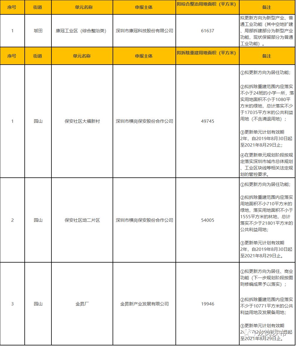 1、本表所列的城市更新單元須按照城市更新相關(guān)政策完成城市更新單元規(guī)劃編制及項目實施主體確認等工作后方可實施開發(fā)建設。