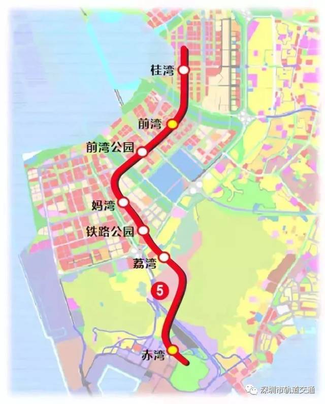 地鐵5號線南延線(即5號線二期工程),北起于5號線前海灣站,經(jīng)前海、南山,終點與地鐵2號線赤灣站換乘。