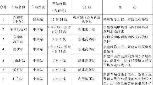 新建深茂鐵路深圳至江門段為高速鐵路,雙線。正線西麗至南沙段及深圳北至深圳機(jī)場聯(lián)絡(luò)線時速200公里,正線南沙至江門段時速250公里;新建設(shè)西麗、深圳機(jī)場、濱海灣、南沙、中山北、橫欄、江門共7座車站。