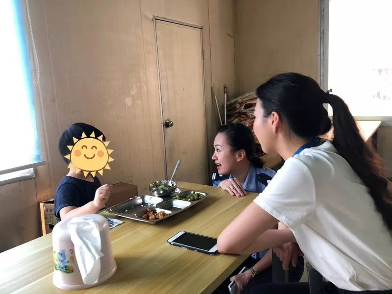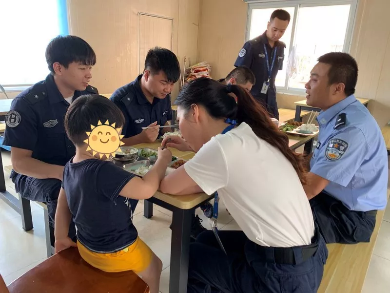 正值午飯時分,小男孩說餓了,想吃肉。郭飛教導(dǎo)員立即到飯?zhí)媒淮鷰煾堤酎c(diǎn)嫩的青菜,做點(diǎn)軟一些的肉給小男孩吃。并安排輔警王野、輔助人員黃以敏等人繼續(xù)陪同就餐和安撫。