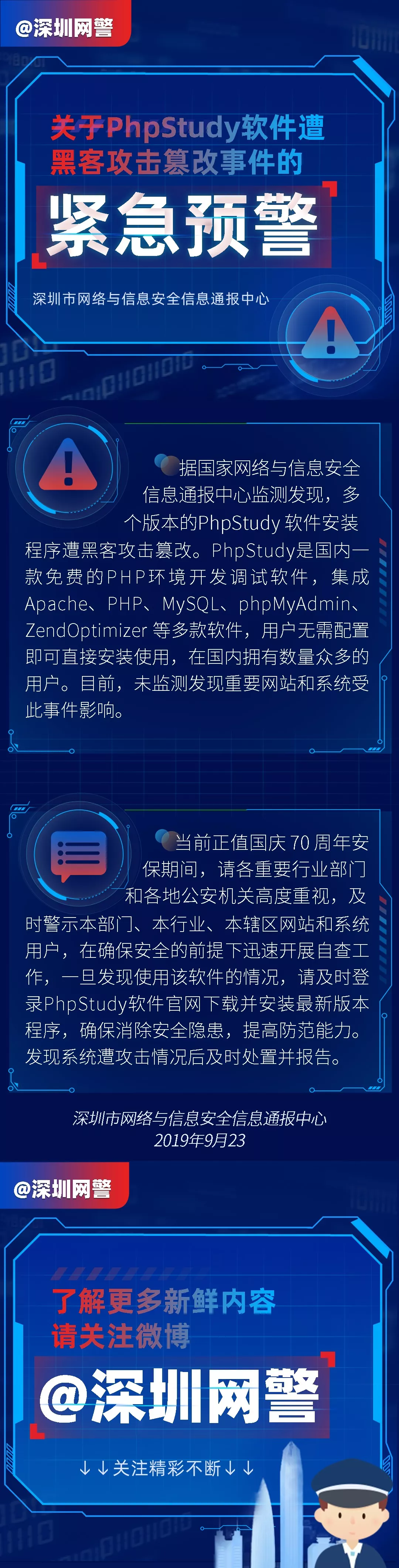 見圳客戶端·深圳新聞網2019年9月25日訊 據國家網絡與信息安全信息通報中心監(jiān)測發(fā)現,多個版本的PhpStudy軟件安裝程序遭黑客攻擊篡改。目前,未監(jiān)測發(fā)現重要網站和系統(tǒng)受此事件影響。