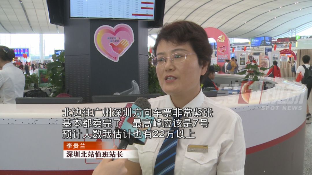 深圳北站值班站長(zhǎng)表示,北站已進(jìn)入客流返程高峰,到達(dá)旅客今天將達(dá)24萬(wàn)人次,10月7日大部分來(lái)往廣深兩地的車(chē)票都已售罄,預(yù)計(jì)客流返程最高峰將出現(xiàn)在10月7號(hào)。