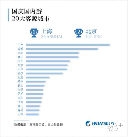 國慶假期20大客源城市:上海和北京出行人數(shù)最多