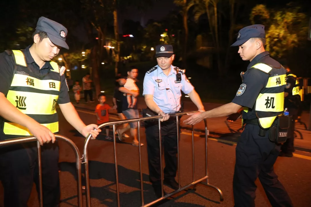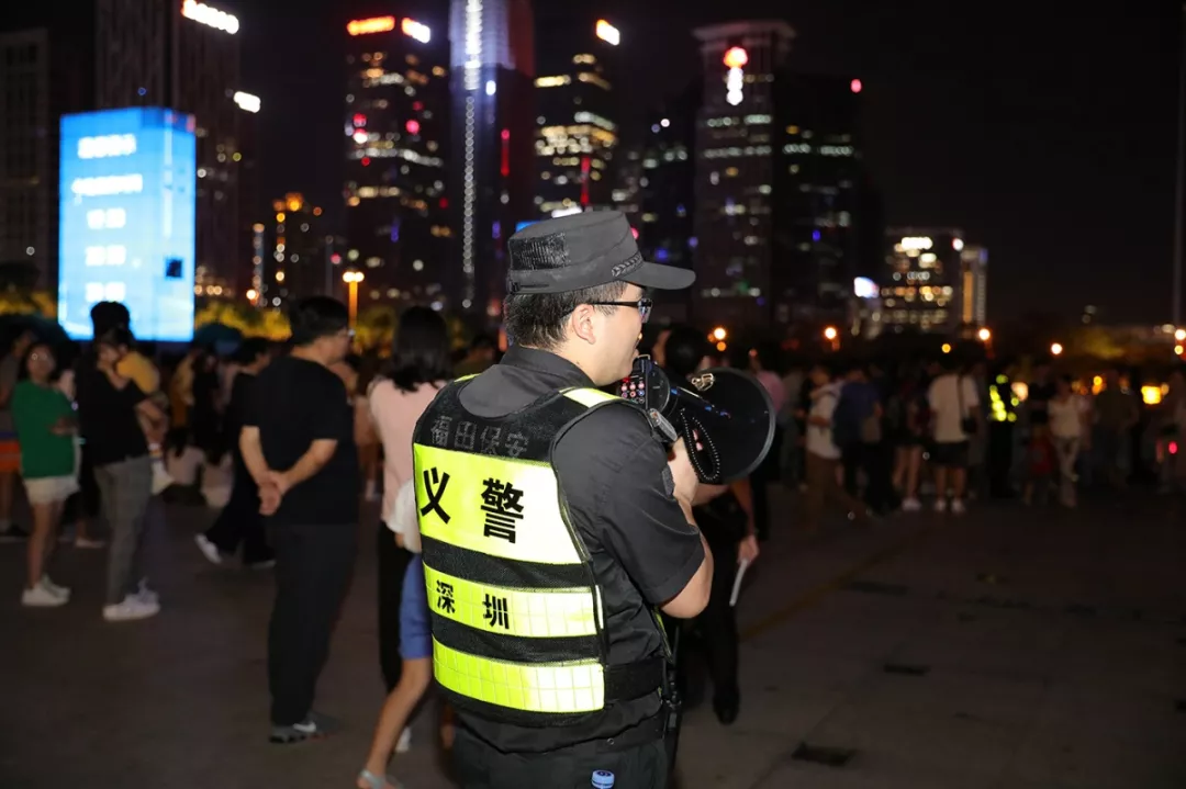 此外,福田公安分局根據(jù)市民中心和蓮花山頂廣場的每日人流負(fù)荷情況實(shí)時(shí)調(diào)整,及時(shí)協(xié)調(diào)城管調(diào)控?zé)艄庑悴コ鰰r(shí)間并加演,避免人流停滯,緩解疏導(dǎo)壓力。值得一提的是,為了方便市民夜間行走,觀賞區(qū)特地“開辟”了幾條新的應(yīng)急道路,并在所有“黑暗死角”都加裝了應(yīng)急燈。福田公安分局指揮處處長張保軍表示:“在安保警力多次實(shí)地巡查后,及時(shí)發(fā)現(xiàn)問題并整改、疏通光線不足及堵塞人群的道路,使市民們在觀看完燈光秀后能夠更加安全、快捷地離開?!背艘酝?,在人流密集的燈光秀現(xiàn)場,孩童走失、物品遺失的情況也有發(fā)生,安保人員不斷地通過廣播尋人、尋物,進(jìn)行實(shí)名登記,盡心盡力地為市民、游客解決切身難題。