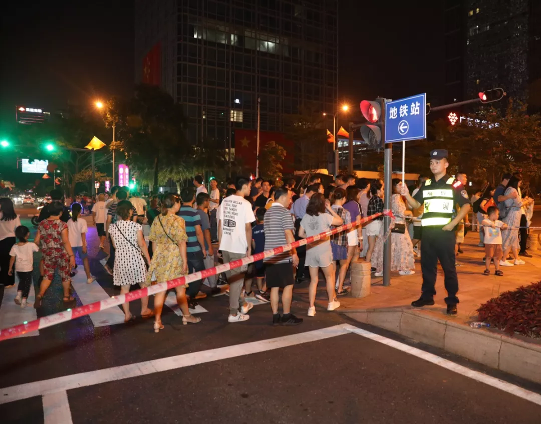 “同一個(gè)時(shí)間、同一個(gè)地點(diǎn),如何保證十幾萬人看完燈光秀,安全、有序、祥和地離開,這不是一個(gè)簡單的安保工作,是一個(gè)系統(tǒng)工程?!备L飬^(qū)副區(qū)長、公安分局局長江峰表示。本次燈光秀疏導(dǎo)工作在國慶節(jié)前已做了預(yù)案,警力每天下午五點(diǎn)半就全部上崗,保證所有的閘口人員就位,封控福中三路和深南大道輔道,利用隔離帶當(dāng)鐵馬,人流北進(jìn)南出?!拔覀兺ㄟ^在廣場各出入口及周邊路段,加裝地鐵、公交指示牌,全程指引疏導(dǎo)人群走向。對市民中心地鐵站六個(gè)出入口進(jìn)行單循環(huán)規(guī)劃,所有觀眾進(jìn)場都是單行線,這樣人群不會形成對沖,保證疏導(dǎo)有序進(jìn)行。”福田公安分局副局長譚慶彬介紹道。